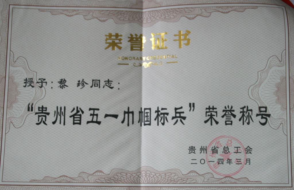 公司黎珍老师获“贵州省五一巾帼标兵”荣誉称号。