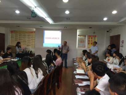 随后群工委工作人员对全体员工进行了工作安排和一个半小时的入职培训。培训指导中,阐明了同学们的实习考核方式,即中期考核和综合鉴定。在工作方面,通过播放视频《你好,观山湖》,使同学们对观山湖新区有了进一步的了解与期待;又通过三个问题“什么是社区?什么是社区服务?社区服务有哪些?”系统的设问让同学们对工作性质与工作内容有了进一步的认识。同时,在员工的价值追求方面,通过提问:“你来是做什么?你为什么而来?”两个设问让同学们更加清晰的明白了工作的担当与责任,并进一步强调对工作行为准则与安全问题。