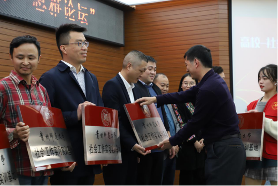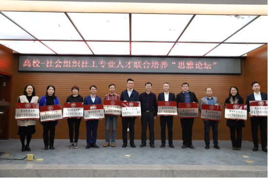 为加强高校和社会组织合作,促进社工专业人才培养和专业发展,公司于10月26号下午在花溪校区会议中心举办高校—社会组织社工专业人才联合培养“思雅论坛”。本次论坛由公司主办,贵阳市花溪区国仁社会工作发展中心和yl23455永利集团新时代贵州文明实践协同研究中心协办。来自省内8所高校社工本科专业和专硕点负责人及专任教师,11家省内知名社会组织负责人及骨干,以及公司社工专业毕业生代表、在校本科生和研究生等近200人参会。围绕论坛总主题“高校-社会组织社工专业人才联合培养”,与会嘉宾就“校社联合的社工专业实习实践创新”“校社联合的社工人才供需对接创新”以及“校社联合的社工团队队伍建设创新”三大关乎社工专业发展和团队建设的重大议题进行了深入交流,为公司社工专业人才培养模式改革和一流专业建设提供了宝贵实践经验和建设思路。论坛期间,公司还为11家共建社会工作实习实训基地的社会组织进行了授牌。
