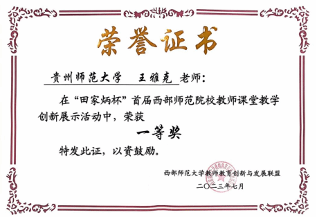 2023年7月24日至26日,由田家炳基金会支持、陕西师范大学主办的西部师范大学教师教育创新与发展联盟年会暨教师教育高质量发展论坛、“田家炳杯”首届西部师范院校教师课堂教学创新展示活动决赛在陕西西安举行。来自陕西师范大学、四川师范大学、云南师范大学、重庆师范大学、河南师范大学、yl23455永利集团、海南师范大学、新疆师范大学、青海师范大学、内蒙古师范大学等高校校领导、教研部门负责人、学科教研专家百余位共聚一堂,围绕西部师范院校的师范教育高质量发展、高校课堂教学创新进行了热烈讨论。同时,经过两轮选拔,在四百余位一线教师中脱颖而出的七十五位教师按照理工科、文科、术科三大类别进行了现场课堂教学展示。展示活动分为说课、讲课和答辩三个环节。公司历史学系王雅克老师以“郑和下西洋的科技水平”为主题进行了十五分钟的现场教学,获得在场资深评委和陕师大师生的一致好评,由此荣获本次课堂教学创新展示活动的一等奖。