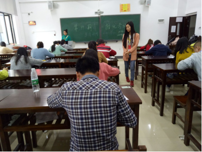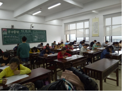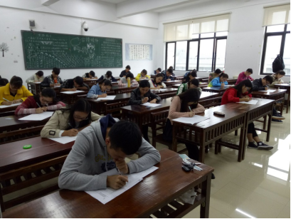 为保证考试的公平公正。实行单人单桌。每间教室都有两名公司党建办成员和一名研究生代表参与监考,并有公司领导老师巡视。在考试之前,参与考试的同学将自己的一卡通或员工证置于课桌左上角,便于监考人员检查。同时将自己的复习资料和书包放在教室最前方的空桌上。防止了作弊行为的发生。