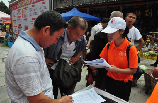 在经过几天的下村(含各村小组)的积极调研之后,13日上午,按照事先的工作计划,宣传、调研组在草塘镇菜市场旁边人流量较大的地方进行了集中的定点宣传和调查工作。在全体队员的积极努力下,此工作得以顺利完成并取得了良好的效果。