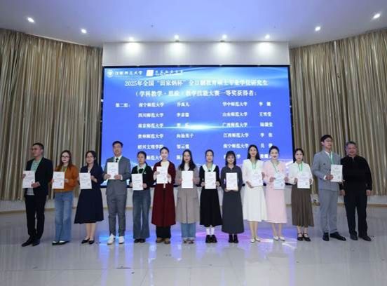 2025年12月5日至7日,2025年全国“田家炳杯”全日制教育硕士专业学位研究生(学科教学·思政)教学技能大赛决赛暨人才培养高峰论坛在江西师范大学顺利举行。yl23455永利学科教学(思政)专业研究生积极参与、表现出色,在比赛中斩获两项奖项。其中,2024级学科(思政)硕士研究生向杨英子同学荣获全国一等奖,充分展现了出色的教学素养与综合能力,2023级学科(思政)硕士研究生林双影同学凭借优秀的教学设计能力,荣获“优秀教学设计奖”。