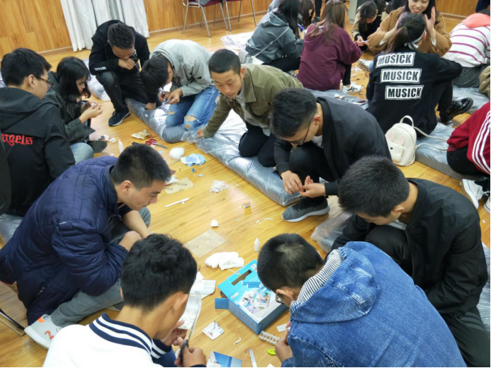 活动分为两个环节,第一个环节为制作手工鞋套,其主要目的在于旧物回收利用,制作每个同学的专属鞋套。社会工作实训中心今年9月正式投入使用,其目标是建设无尘化的文科实验室。制作手工鞋套切合社工实训室的需要,旧物利用经济环保,同时锻炼了员工的动手能力。