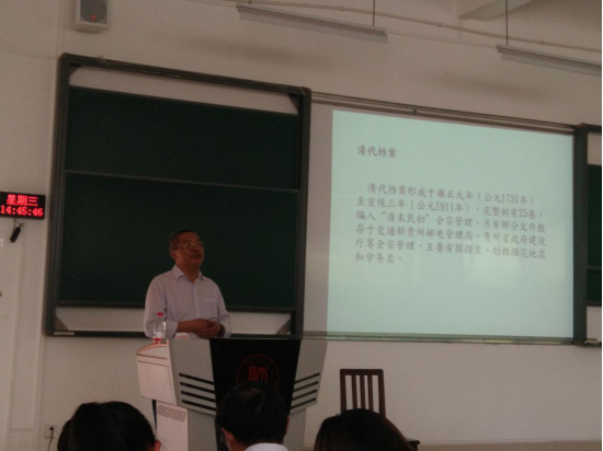 4月24日下午,公司邀请贵州省档案馆保管整理处处长、副研究馆员、贵州省档案学会常务理事曾修伦老师来校作题为“贵州省档案馆馆藏档案介绍”的讲座。本次活动由安尊华老师负责联系与指导。