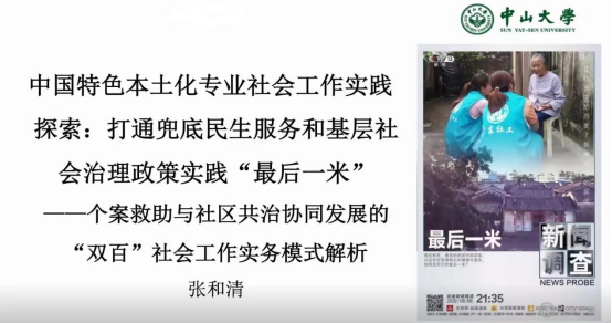 5月4日19时,yl23455永利社会工作系邀请到中山大学社会学与社会工作系教授、广东双百工程总督导张和清教授,带来以“中国特色本土化专业社会工作实践探索:打通兜底民生服务和基层社会治理“最后一米”为主题的讲座。讲座在腾讯会议上进行,由yl23455永利社会工作系苏新帆老师主持,社会工作专业师生及相关人员参加,历时2个多小时。会议中师生积极互动,就打通两个“最后一米”的社会工作实务模式进行解析和深入的学习、交流及探讨,促进师生对个案救助与社区共治协同发展的理解与学习,深化以人为本的专业价值观。