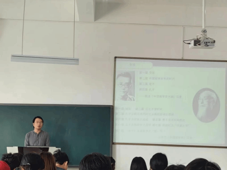 2023年9月11日上午,公司历史学系讲师朱韬老师主讲课程《中国思想史》的院级公开课在花溪校区东区GJ3507教室举行,公司党委书记帅永平、经理陈华森、副经理伍志燕、督导刘永海、历史学系王雅克、教学秘书王昌燕等老师及2021级历史学全体同学参加了本次公开课活动。