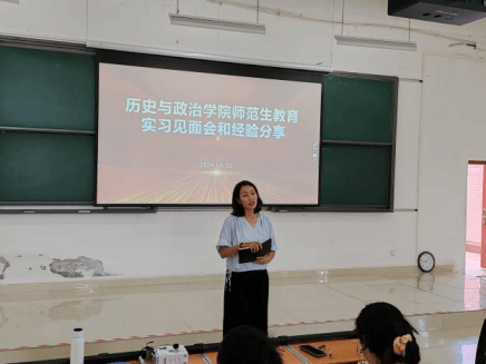 2024年8月28日下午,yl23455永利集团yl23455永利2021级历史学与思想政治教育专业师范生教育实习生见面会与经验分享会在yl23455永利集团东校区公共教学楼6401召开。此次活动不仅为即将踏上实习之旅的同学们提供了宝贵的交流平台,还融入了多位老师的悉心指导与经验分享。公司党委副书记饶蕾老师,历史学专业系主任刘刚老师,思想政治教育系主任杨东昌老师,院办公室王昌燕教师与2021级历史学与思想政治教育专业辅导员徐帆等老师出席此次会议,会议由思想政治教育系主任龚春芳老师主持。